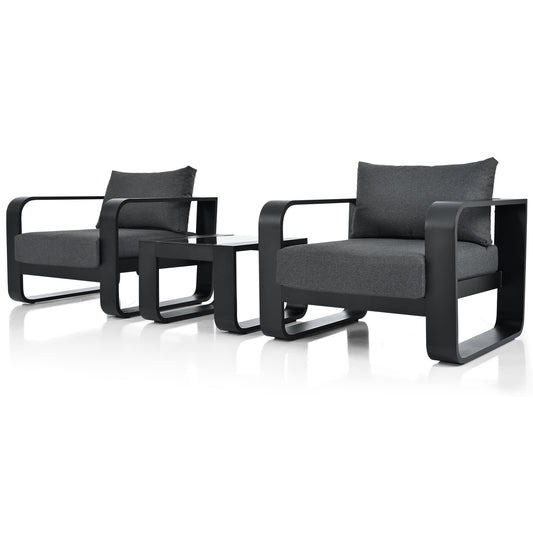 3-pieces Aluminum Frame Patio Furniture With 6.7" Thick Cushion And Coffee Table, All Weather Use Olefin fabric Outdoor Chair
