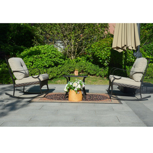 Patio Garden Wicker Rocking Chairs and Table Set withTempered Glass Top